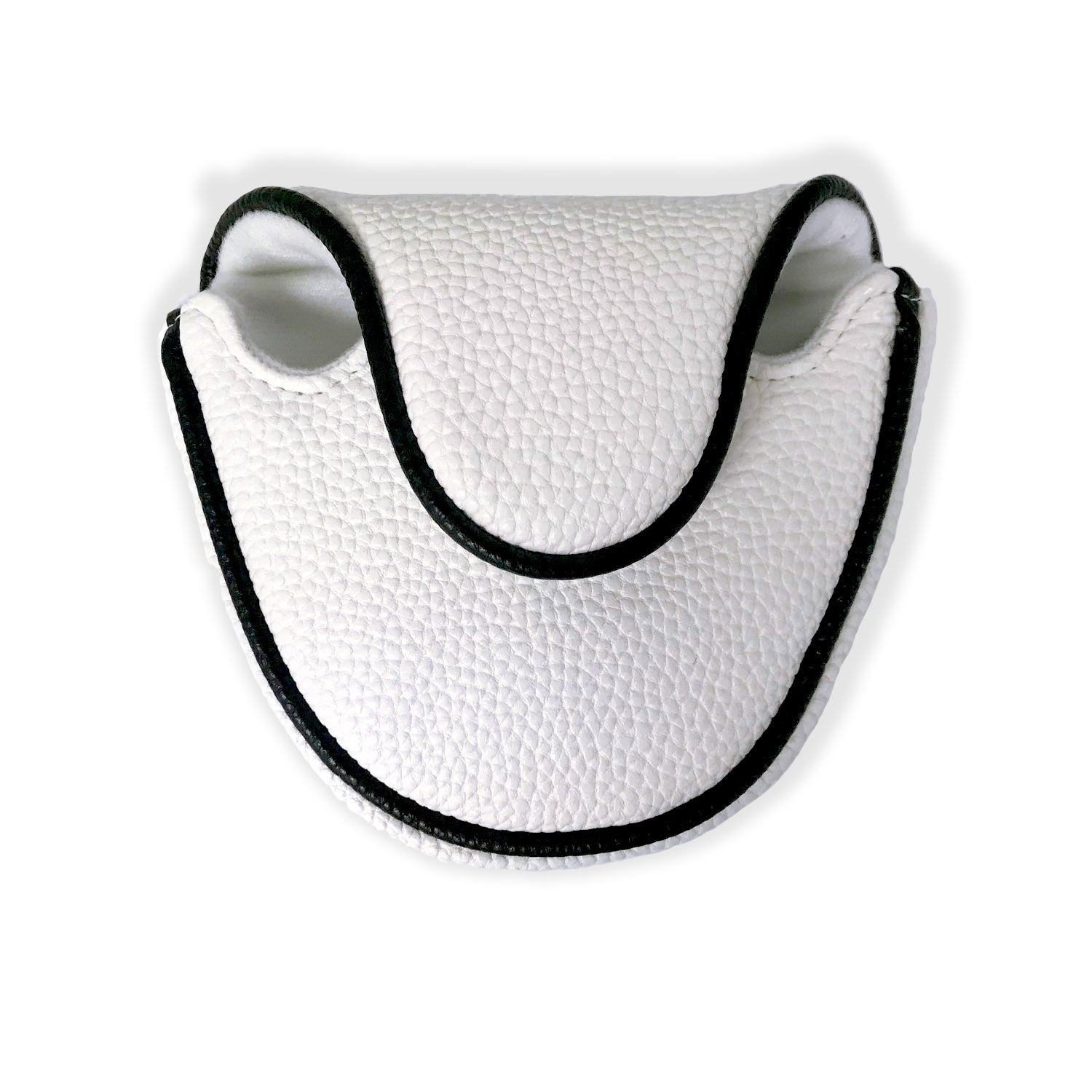 This classic mallet putter cover in white PVC comes with cool black piping. Perfect fit for most mallet putters and suitable for both right- and left-handed clubs.